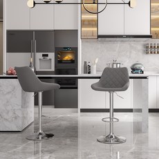 WISFOR 아일랜드 식탁의자 바의자 높이조절 인체공학 인조가죽 회전체어, 그레이, 1개