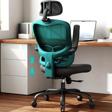 LANDOMIA 인체공학 사무용 책상 의자 팔을 위로 젖히고 허리 높이를 조절할 수 있는 메쉬 무거운 사람을 위, Black