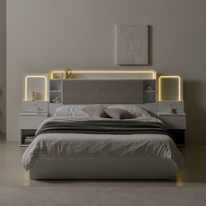 웰퍼니쳐 헤일로 LED 호텔식 수납침대 프레임 + 사이드 패널 방문설치, 라이트그레이