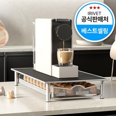 아이리벳 네스프레소 커피 캡슐 보관함 호환 스틸 서랍형 40구 받침대, 1개, 실버
