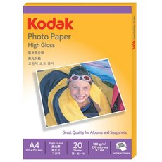 코닥 고광택 포토 용지 180g A4 20매 / 잉크젯 전용 / 인화지 / 사진인화지 / 사진용지