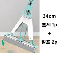 웨버몰 매직펄프 청소밀대 물걸레 매직펄프 청소기 본체1P + 펄프 2P, 하늘색 34cm, 1세트