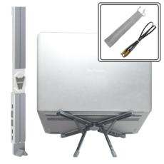 sunplanet 썬플레닛 C타입 PD100W 접이식 휴대용 노트북 거치대 태블릿 아이패드 거치대 알루미늄합금 노트북 확장도크 5in1 허브 거치대 XY1-1전용파우치 케이블, 허브모델 실버