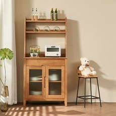 빈티지 원목 홈카페 컵 수납장, 브라운