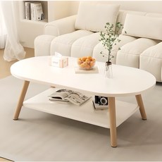 KURUA 간이 우드 2단 거실테이블 소파테이블, 1000×500mm, 화이트