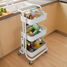 레퓰리 철제 트롤리 선반 3단 이동식 다용도 수납 4단 정리함 수납통포함, 화이트