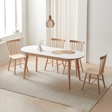 웰퍼니쳐 피오니 자작나무 원목 타원형 식탁 1600 방문설치, 화이트, 4인용