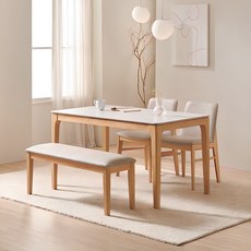 [삼익가구] 어썸 통세라믹 4인용/6인용 원목 식탁 풀세트, 01. 4인용 통세라믹 원목 식탁세트(벤치1+의자2), 내추럴