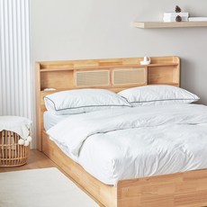 [라탄무늬 너무예쁨!] 파로마 라보 LED 원목 수납침대 Q 6회전본넬매트