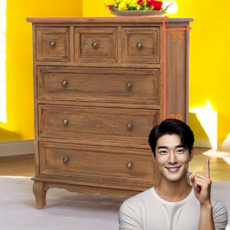 하프탑 고무나무 원목 5단 옷 서랍장, 단품