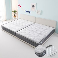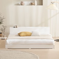 젠티스 스퀘어 모던 저상형 패밀리 침대 프레임 + 본넬 매트리스 세트, 화이트