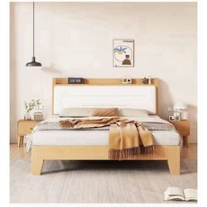 엘티제이 가죽 침대 현대 심플 침대 프레임(매트제외) A4, 원목색
