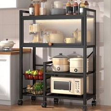 SeekFun 주방 선반 양념채소 다층 렌지대 수납 선반 다용도 진열장 810mm, 블랙(바구니x4)
