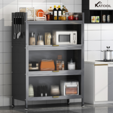 KATOOL 다용도 3단 4단 수납장 튼튼한 철제 렌지대 주방수납장 전자렌지 밥솥 부엌 철제 수납 가구 주방 수납장, 그레이