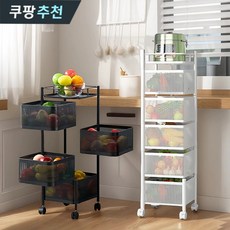 KUAHAI 다층의 회전하다 이동식 수납 틈새 트롤리 욕실 주방 가정용 트롤리 서빙카트 트롤리, 4단, 블랙
