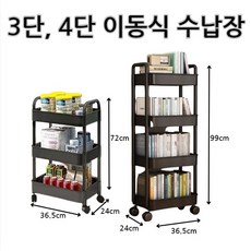 품은 다용도 이동식 트롤리 블랙 3단 4단