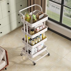 9YOUNG 4단 핸드 트롤리 다용도 수납용 카트 이동식 수납함, 화이트