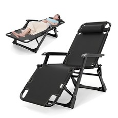 kurua접이식 리클라이너 사무실 접이식침대 휴대용 1인용 캠핑침대 무중력 의자, 방석 미포함, 블랙