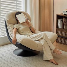 KyLife 북유럽 모던 1인용 리클라이너 구름 쇼파 회전 안락 의자, 베이지(벨벳)/블랙