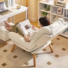 ZOZOFO 편안한 침대형의자 1인용 리클라이너 소파 접이식 사무용 무중력 리클라이너 PC방 컴퓨터 게이밍 의자+ 쿠션 발받침, 아이보리(두꺼운 원단 고양이 긁힘 방지)