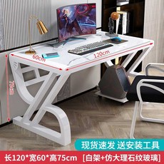 1인용 데스크탑 컴퓨터 게이밍 가정용 철제 테이블, 120x60x75cm(흰색 프레임+흰색 유리)