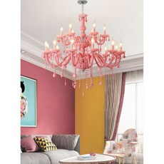 인스타조명 보르디 6등 크리스탈 샹들리에 펜던트 핑크갓, 혼합색상