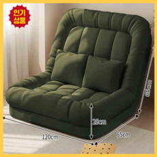 패브릭 1인용 소파 6단 조절 등받이 안락 의자 분리식 침대겸 좌식의자, 1세트, 카키 의자+등쿠션+다리쿠