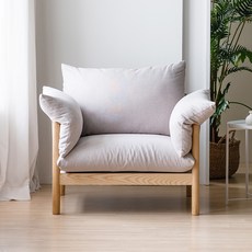 레이디가구 다인 원목 발수패브릭 1인용 소파 방문설치, 애쉬(프레임) + 화이트베이지(커버)