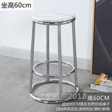 보조 바의자 홈바의자 홈바 아일랜드식탁 홈바체어 식탁의자, 1개, 전기 도금 된 밝은 강관 - 60 높은 모조 흰색 돌