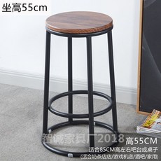 보조 바의자 홈바의자 홈바 아일랜드식탁 홈바체어 식탁의자, 1개, 강화 된 검은 색 강관 - 55 높은 갈색 나뭇결