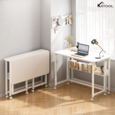 KATOOL 간편한 슬림 바퀴형 이동식 접이식 폴딩 책상 업그레이드 컴퓨터 공부 책상, 선반 모델